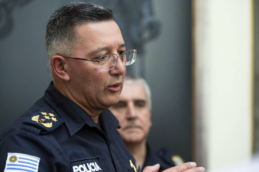 José Azambuya, en conferencia de prensa por las amenazas de bomba, el 26 de marzo, en el Ministerio del Interior.