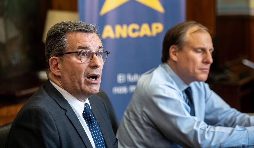 Alejandro Stipanicic e Ignacio Horvath en conferencia de prensa en ANCAP (03.05.2022).