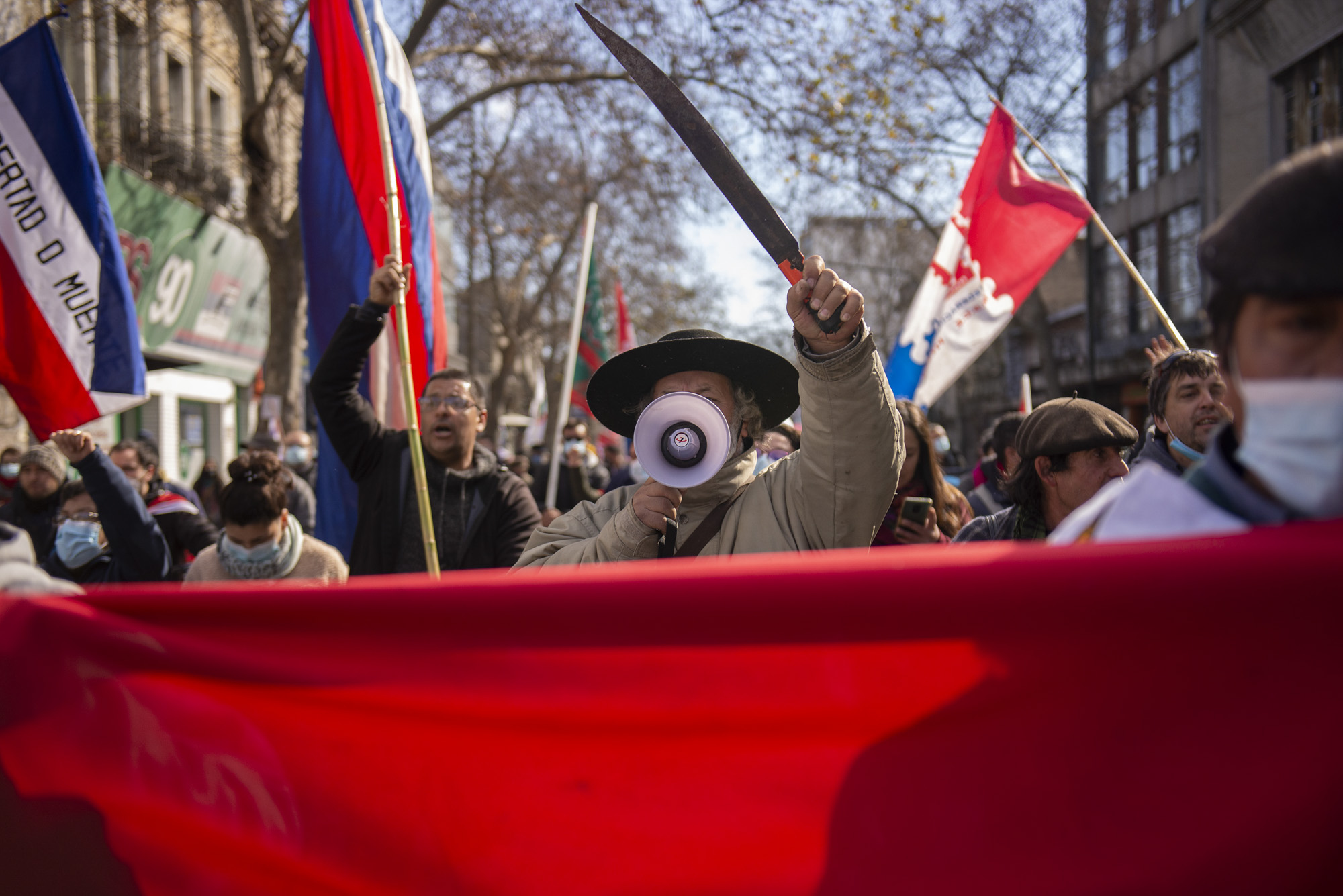 Caravana de trabajadores de Alcoholes del Uruguay desde la planta de la empresa en Capurro hasta la plaza 1º de Mayo, el 20 de julio. Foto: Alessandro Maradei