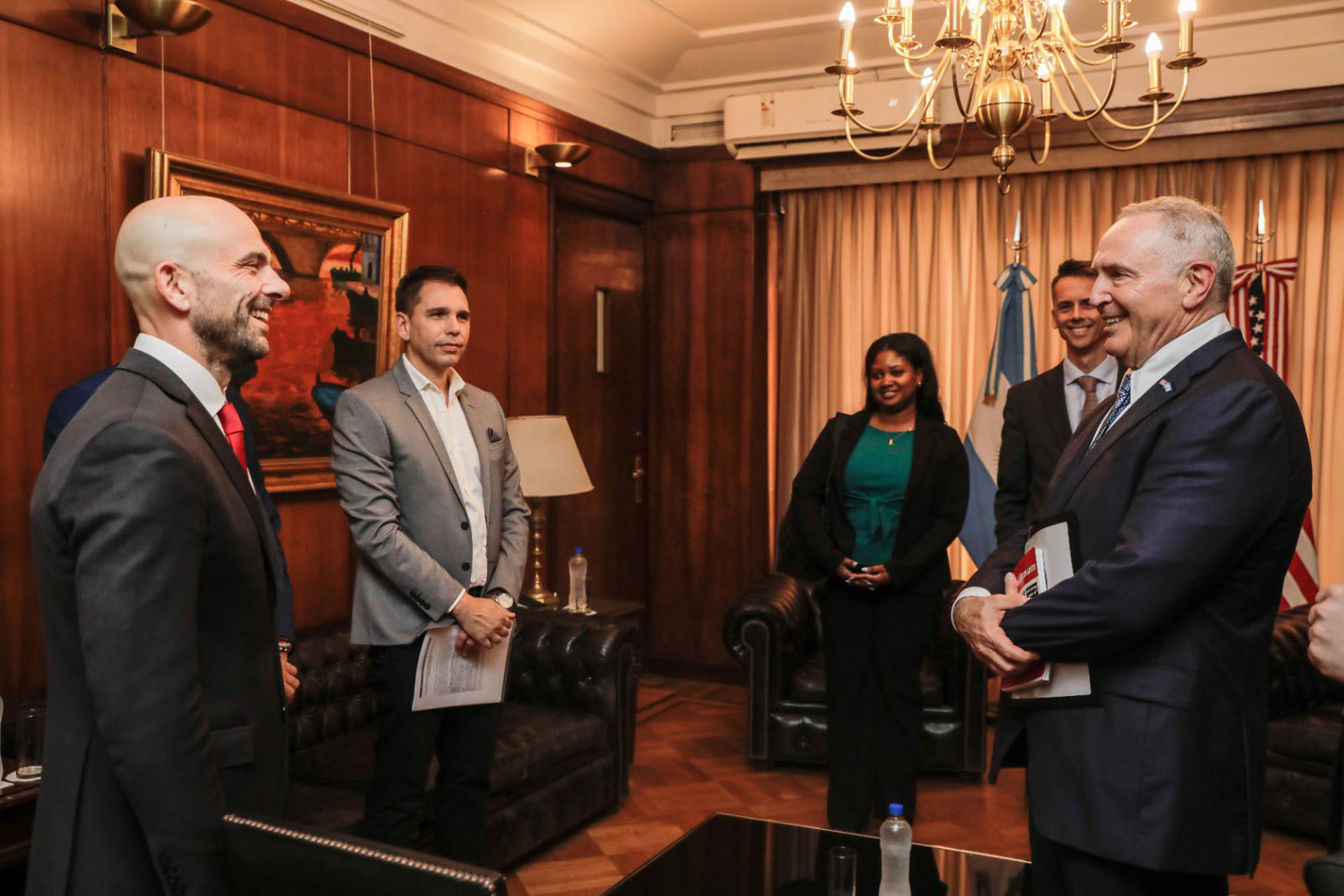 El embajador estadounidense en Buenos Aires, Marc Stanley (der) junto al secretario de Transporte argentino, Franco Mogetta (izq). Foto: X Marc Stanley