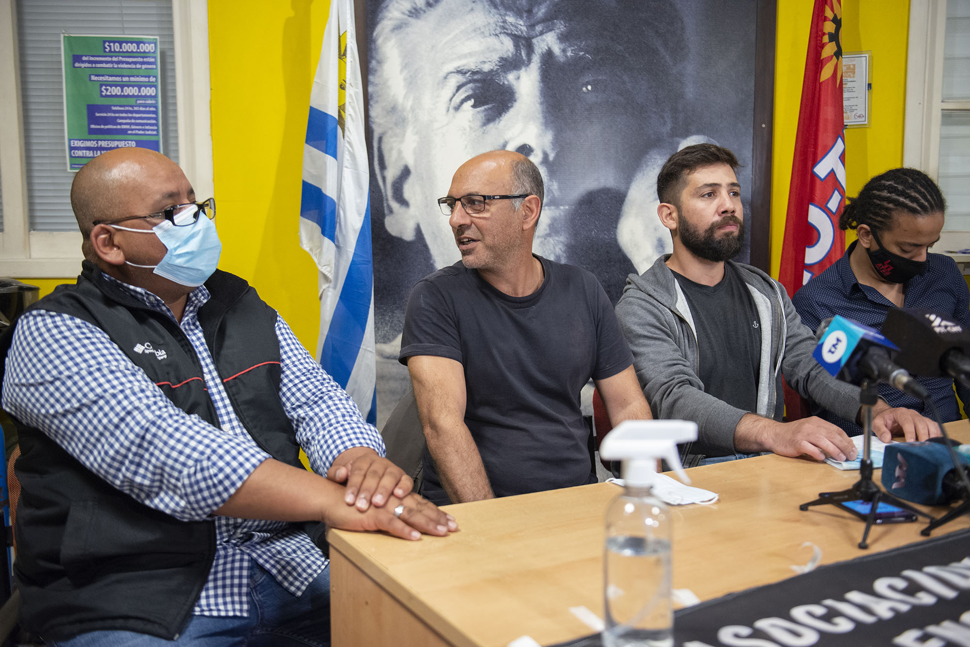 José Olivera, Marcelo Abdala, Pablo de Leon y Julian Cabrera, este 1 de noviembre, en la sede del PIT-CNT.