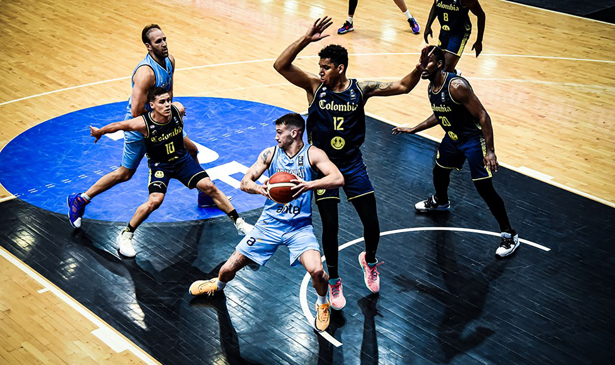 Uruguay y Colombia, en los juegos de Pre-Clasificación Olímpica y la Copa del Mundo de Baloncesto, en el estadio Vicente Rosales, Santiago del Estero, Argentina (14.08.2023).
