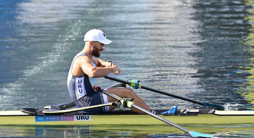 Bruno Cetraro en la final B de remo single en los Juegos Olímpicos de París 2024. Foto: Secretaría Nacional del Deporte