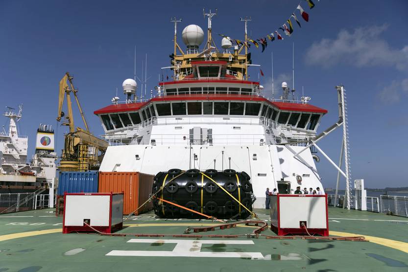 Laboratorio del buque científico sir David Attenborough, en el puerto de Montevideo.