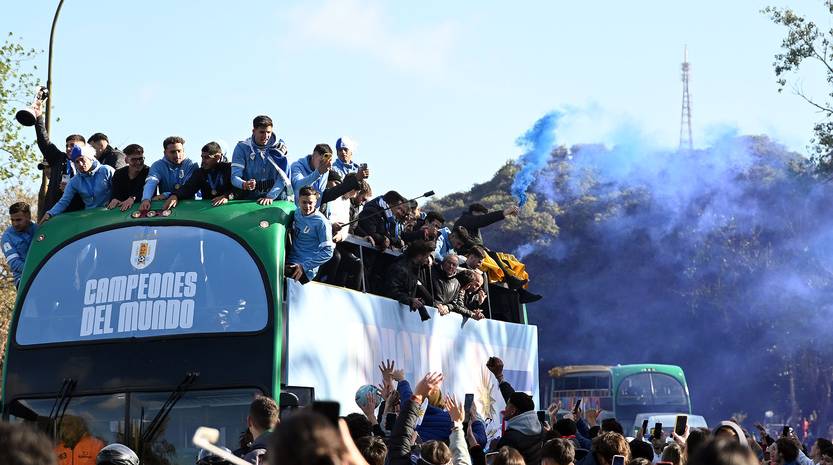 Caravana de recibimiento a la selección sub 20 este lunes, en el Parque Batlle.