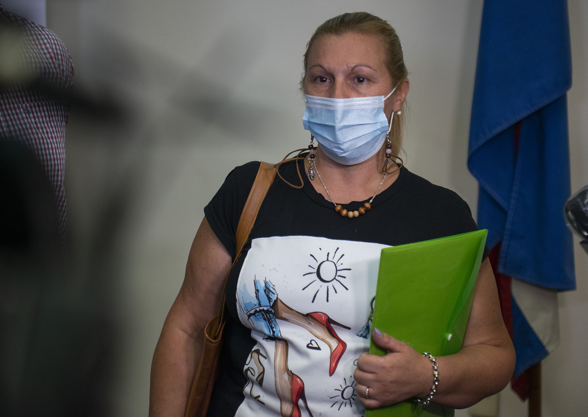 Yoselin Cabrera de la Asociación de Funcionarios de Casa de Galicia, este lunes en el MTSS.