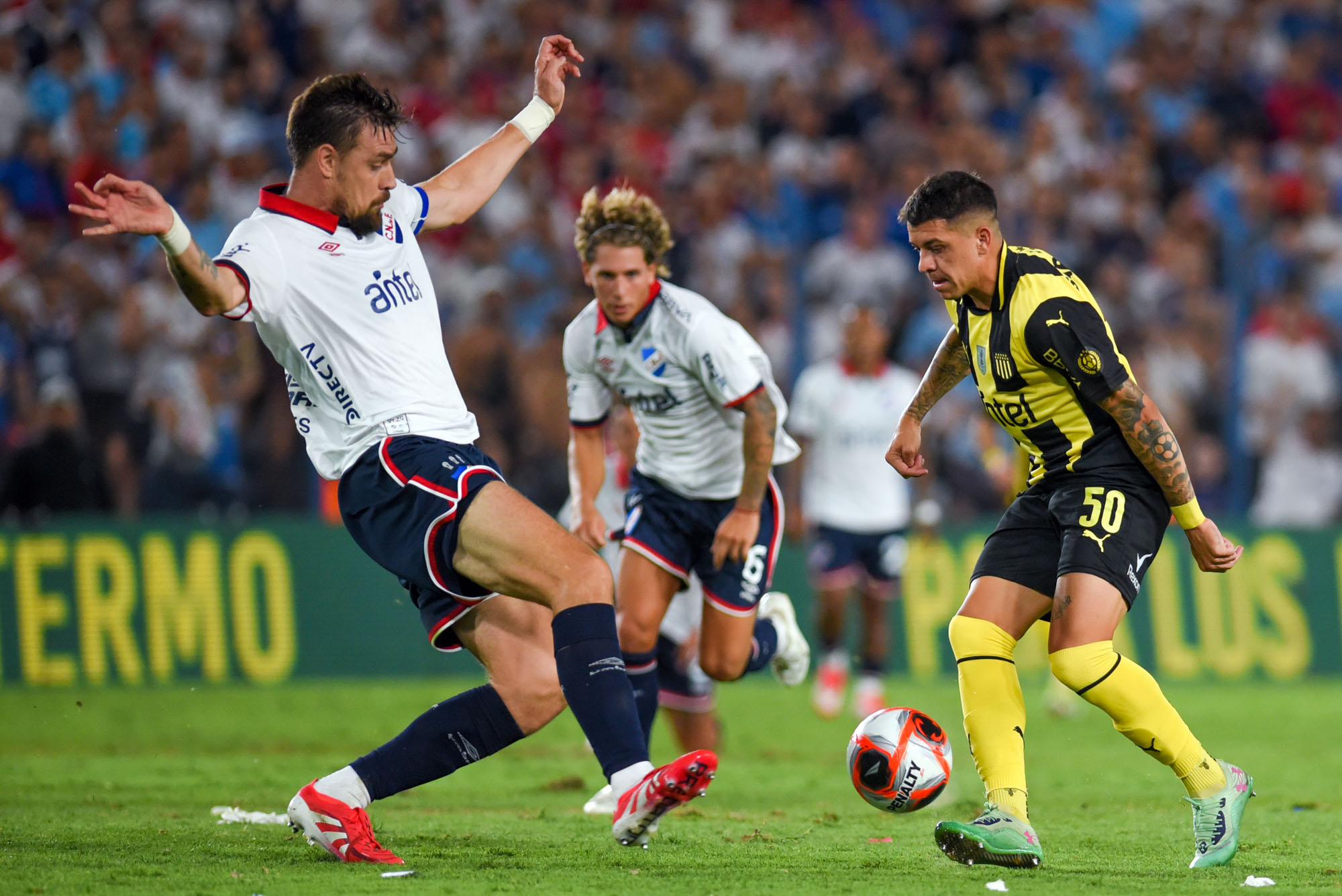 Sebastián Coates, de Nacional, y Diego García, de Peñarol, en el Gran Parque Central.
