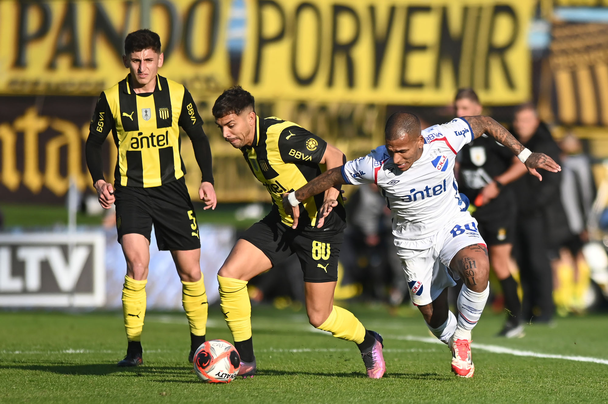 David Terans, de Peñarol, y Romulo Otero, de Nacional, el 6 de julio, en el estadio Centenario.