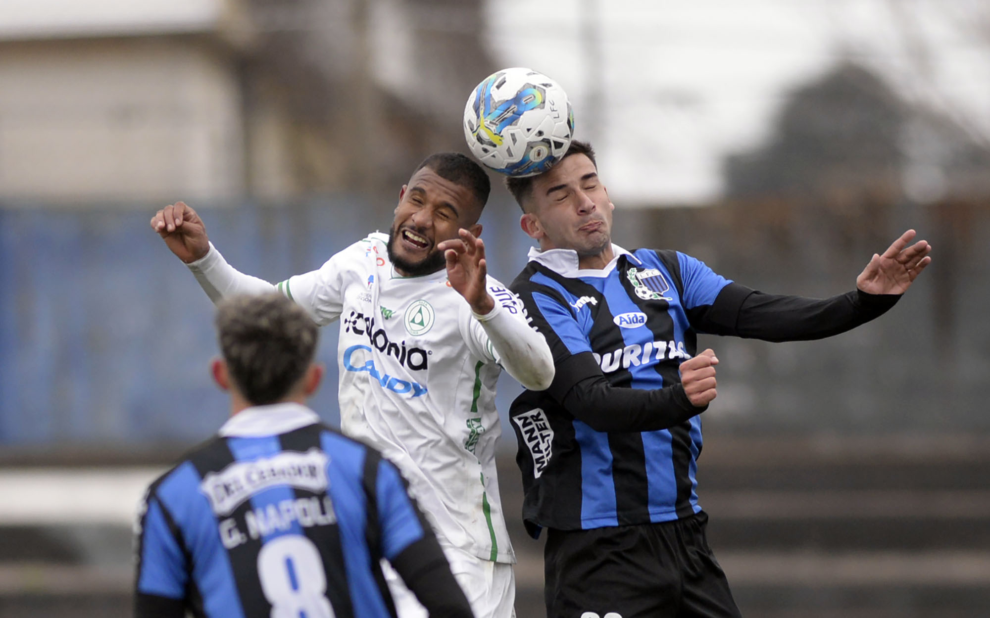 Daniel Bahía, de Plaza Colonia, y Mateo Ántoni, de Liverpool, en Belvedere (archivo, julio de 2023).