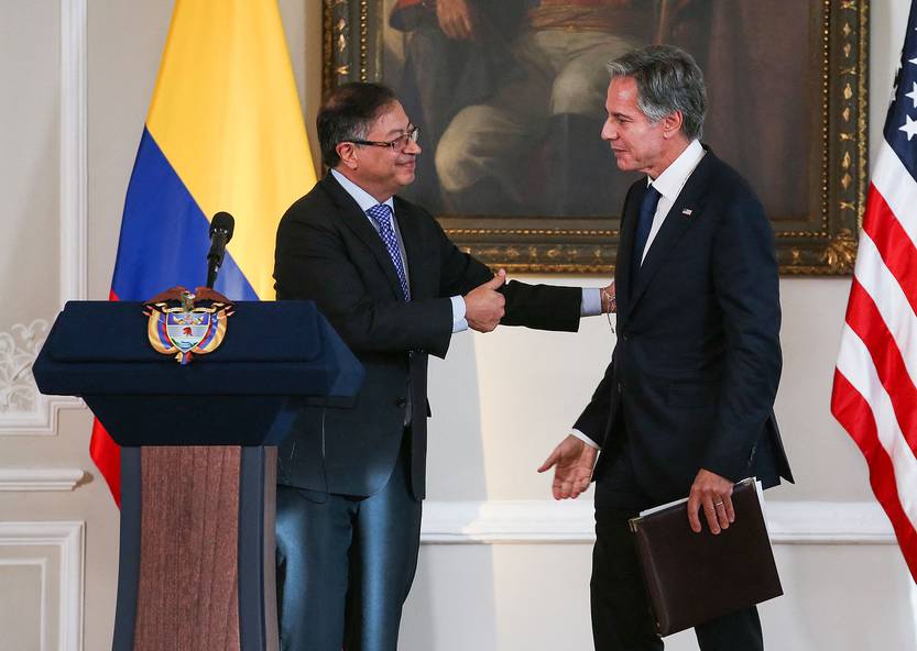 Gustavo Petro, presidente de Colombia, y Antony Blinken, secretario de Estado de Estados Unidos, en la sede de la Presidencia de Colombia en Bogotá (03.10.2022).