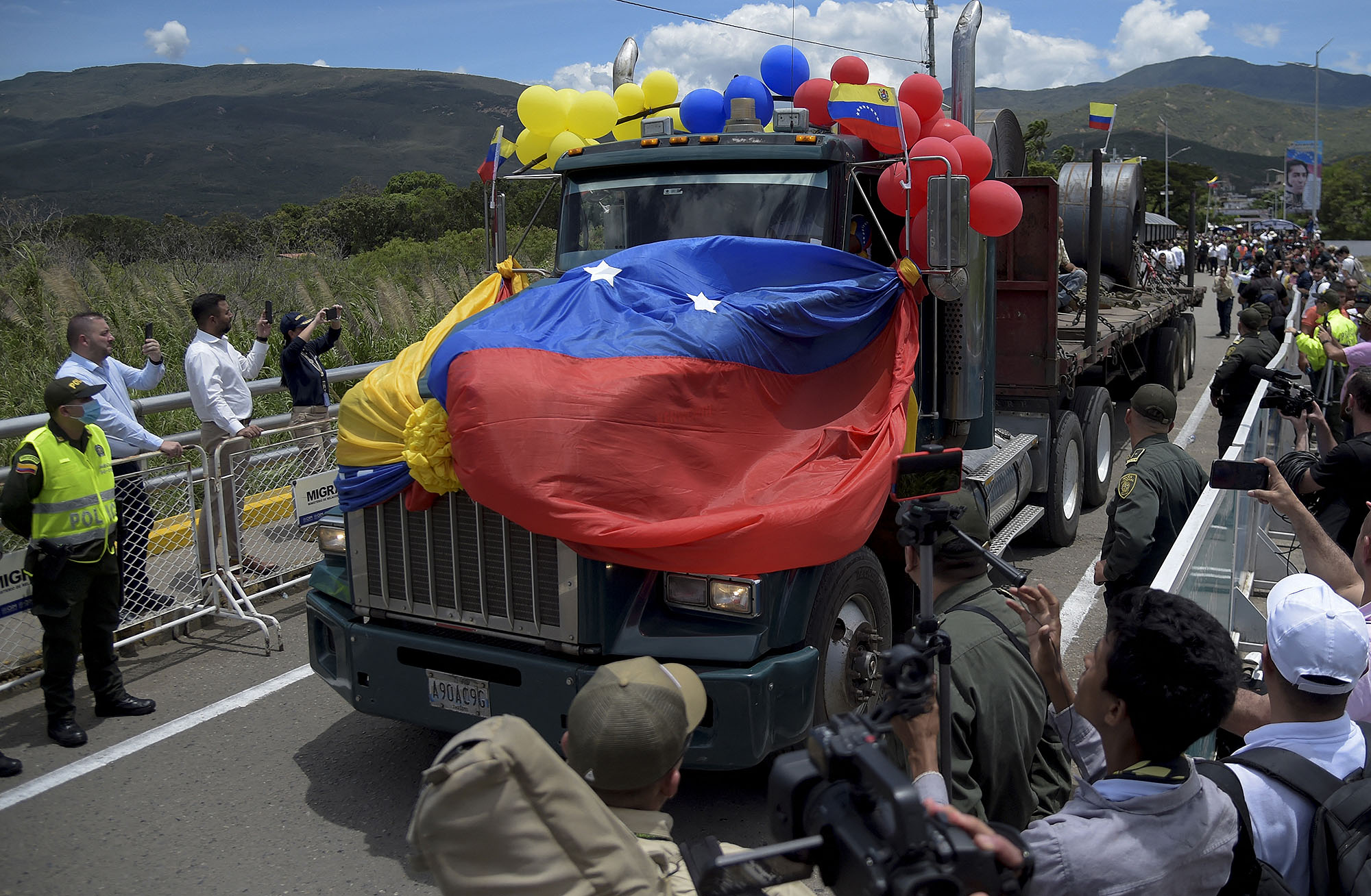El primer camión de Venezuela cruza el Puente Internacional Simón Bolívar durante una ceremonia para reabrir oficialmente la frontera terrestre (26.09.2022).