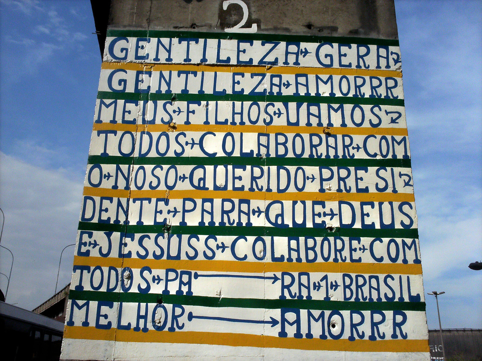 Columna en viaducto de Río de Janeiro con inscripciones de José Datrino.