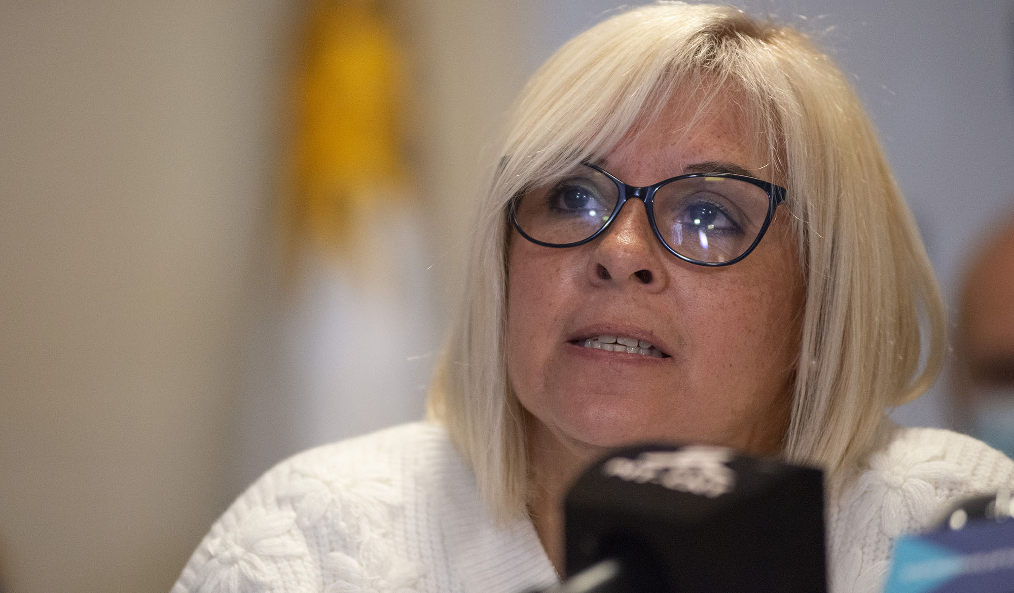 Sandra Bargas durante el lanzamiento de campaña para la anulaciòn de los 135 articulos de la LUC, este martes, en el PIT-CNT.