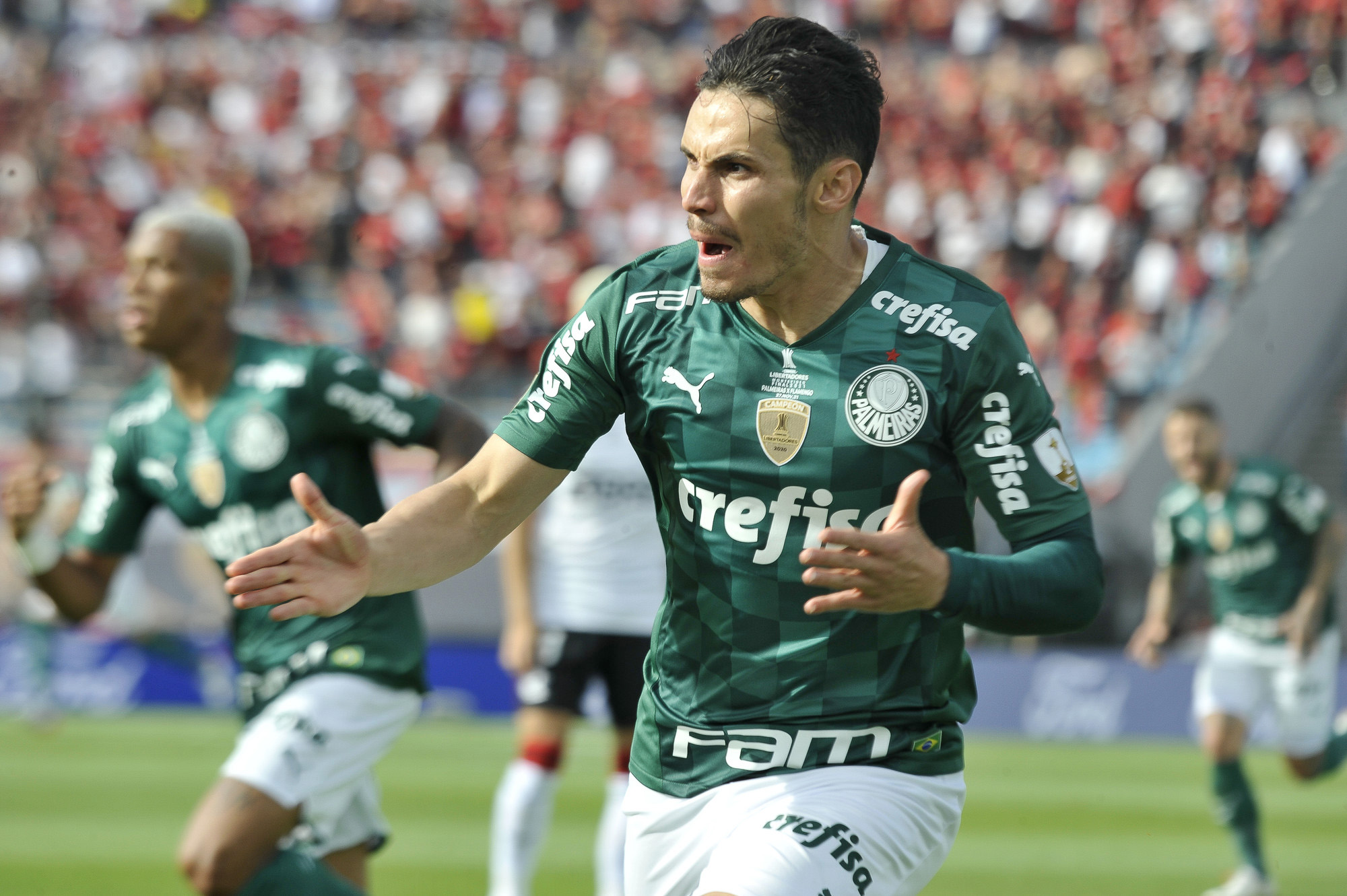 Gol de Raphael Veiga del Palmeiras (1- 0), en la final de la Copa Libertadores 2021, en el Estadio Centenario.