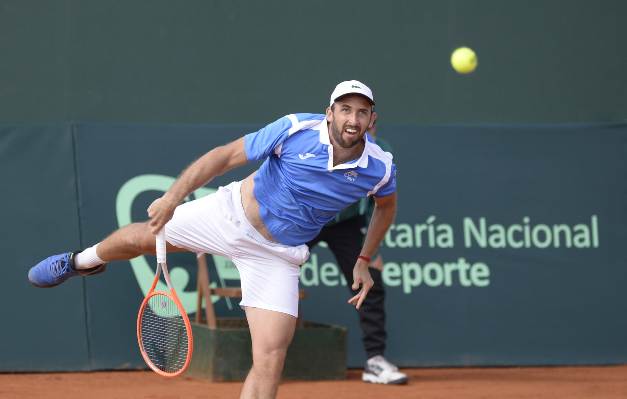 Martín Cuevas durante el patido de dobles de Copa Davis, este domingo, frente a Países Bajos, en el Carrasco Lawn Tennis Club.