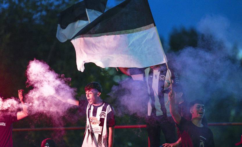 Hinchas de Wanderers, de Santa Lucía, en el Estadio Eduardo Martínez Monegal, en Canelones (archivo, diciembre de 2021).