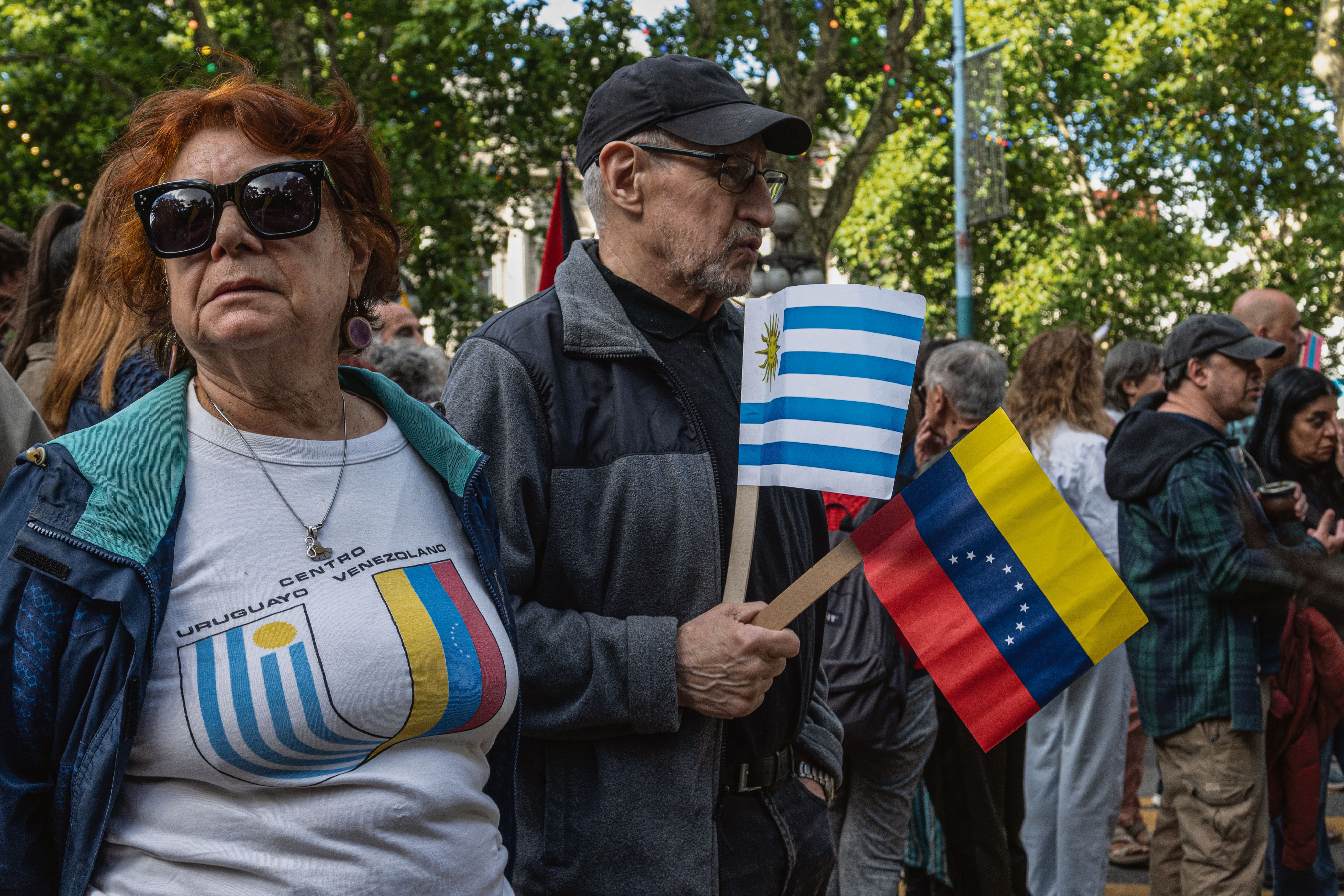 Movilización en rechazo de la intervención de Estados Unidos en Venezuela, el 3 de enero en el centro de Montevideo.