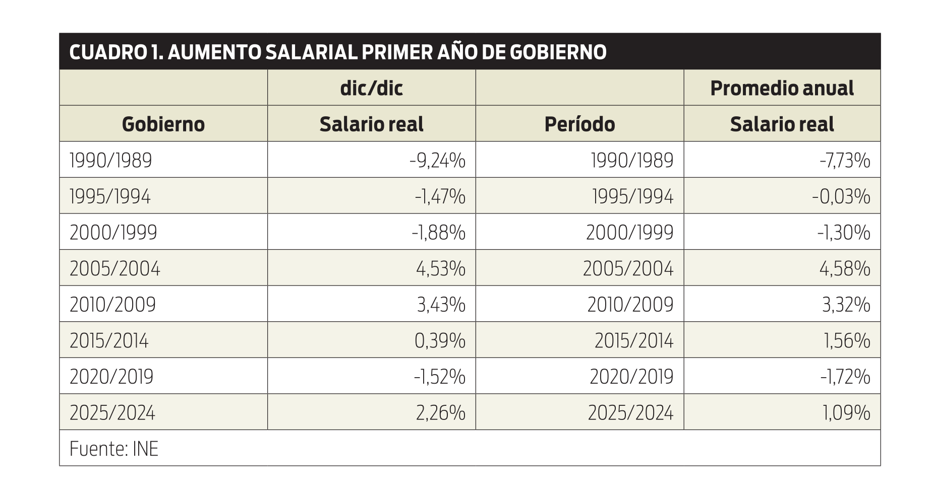 Cuadro 1 - Aumento salarial primer año de gobierno