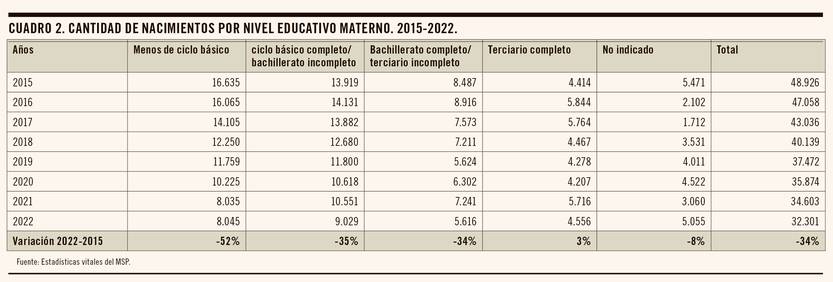 Cuadro 2. Cantidad de nacimientos por edad materna. 2015-2022