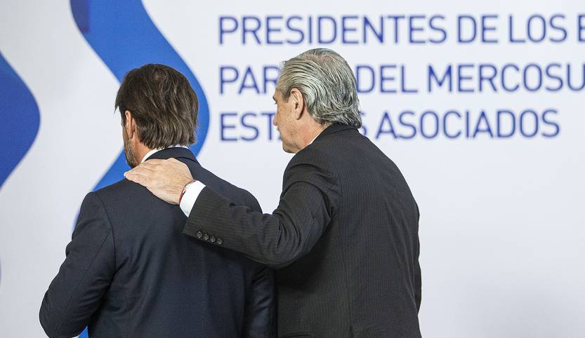 Luis Lacalle Pou y Alberto Fernández, en la Cumbre del Mercosur (06.12.2022).