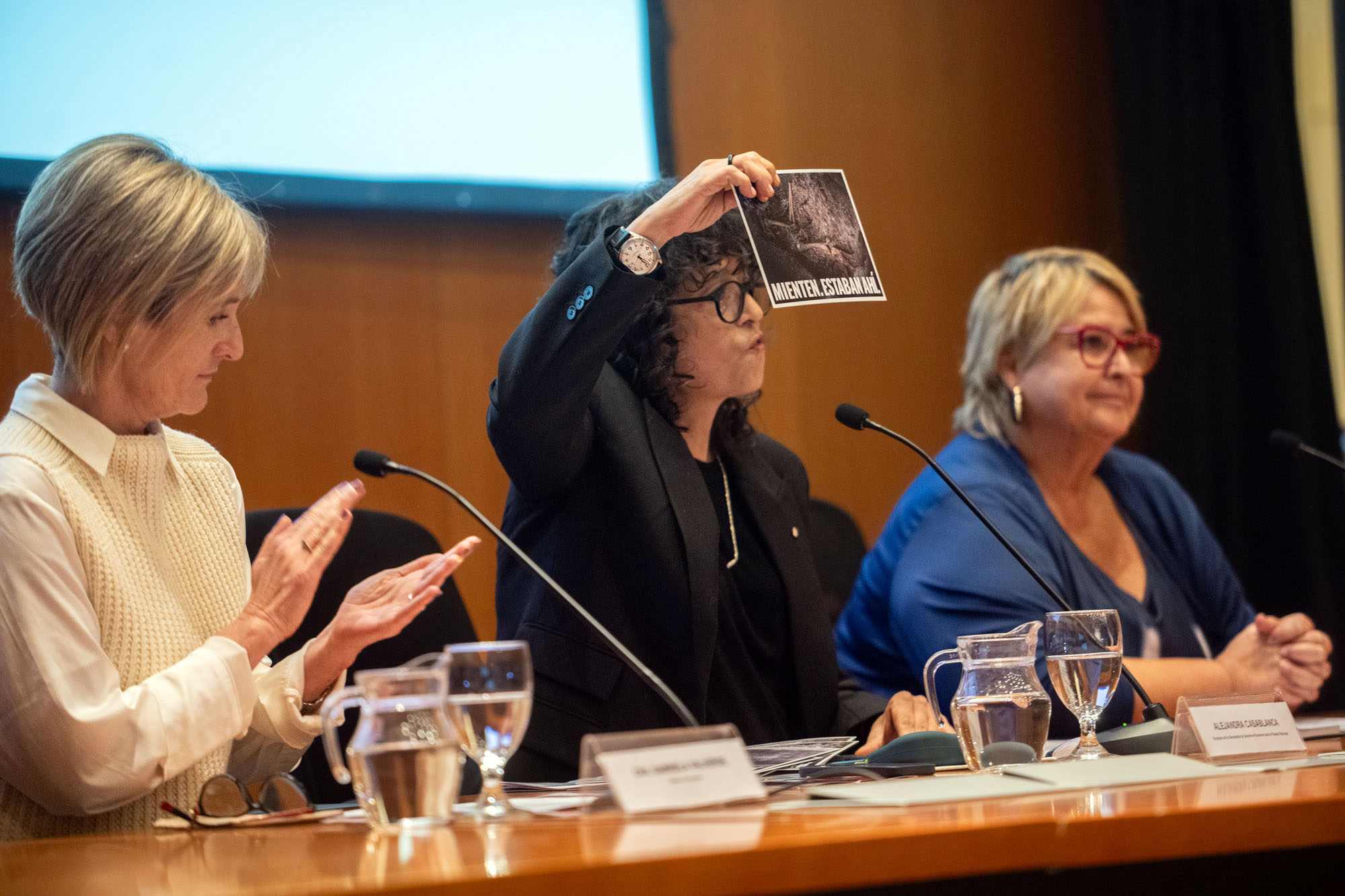Gabriela Valverde, Alejandra Casablanca y Sandra Lazo, en la presentación de lineamientos y Avances de la Secretaría de Derechos Humanos para el pasado reciente, el 21 de mayo, en la Torre Ejecutiva.