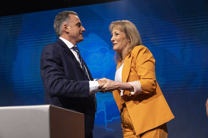 Yamandú Orsi y Carolina Cosse, el 17 de noviembre, en el debate.