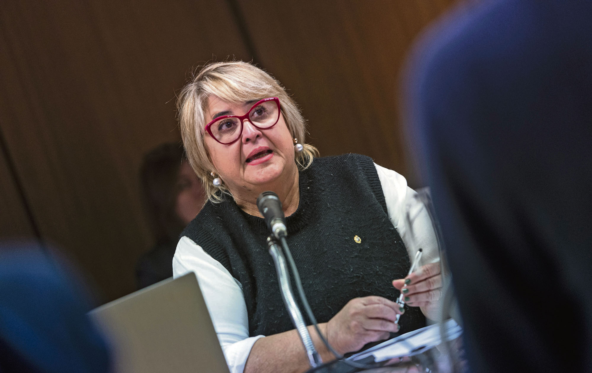 Sandra Lazo en la Comisión de Defensa de Diputados, el 10 de junio, en el anexo del Palacio Legislativo.