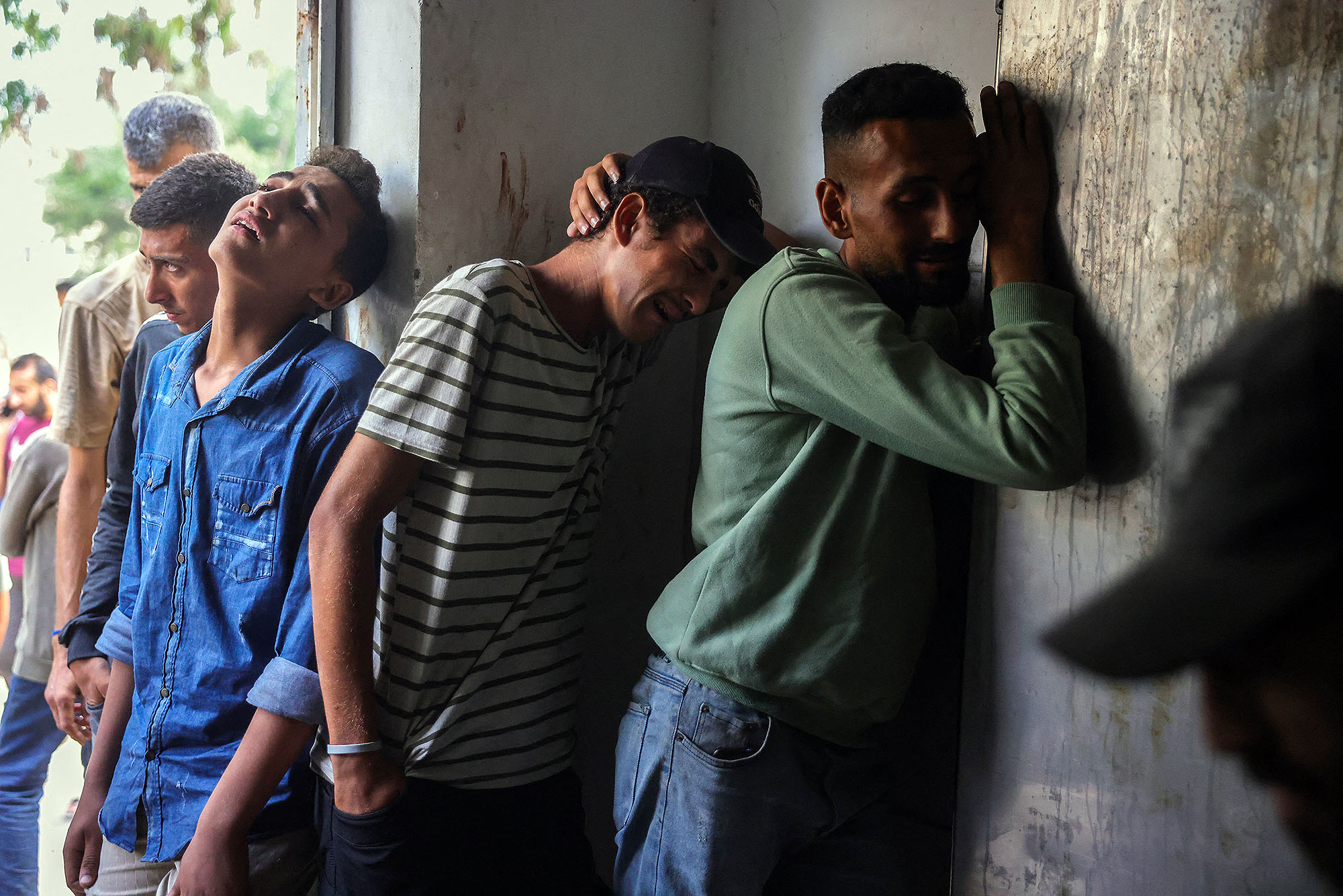 Palestinos lloran frente a la morgue del hospital Shifa de la ciudad de Gaza, a la que se trasladaron los cuerpos de las personas que murieron el día anterior mientras esperaban ayuda, el 31 de julio.