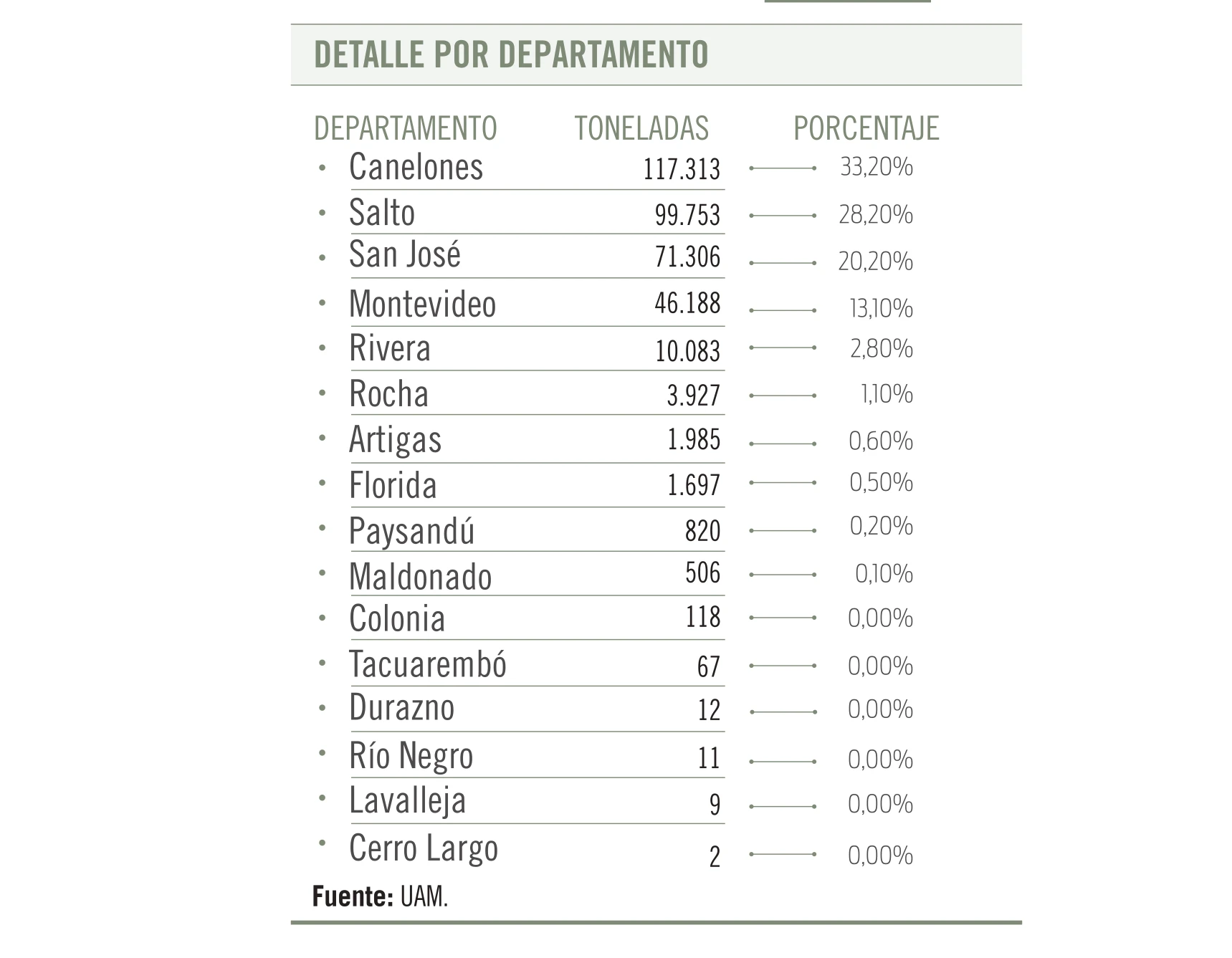Detalle por departamento UAM