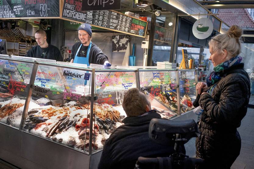 Mercado de pescado en Torvehallerne en Copenhague (01.02.2022).