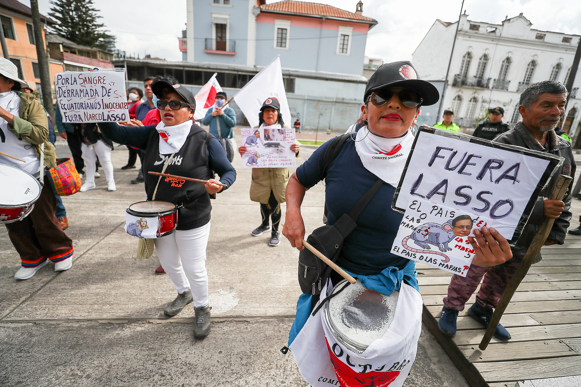 Manifestación contra el presidente de Ecuador, Guillermo Lasso, el 9 de mayo, frente a la Asamblea Nacional, en Quito, Ecuador.