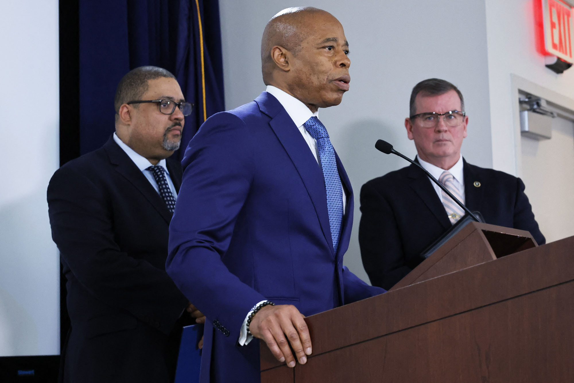 Eric Adams, alcalde Nueva York, el 8 de febrero, durante una conferencia de prensa.