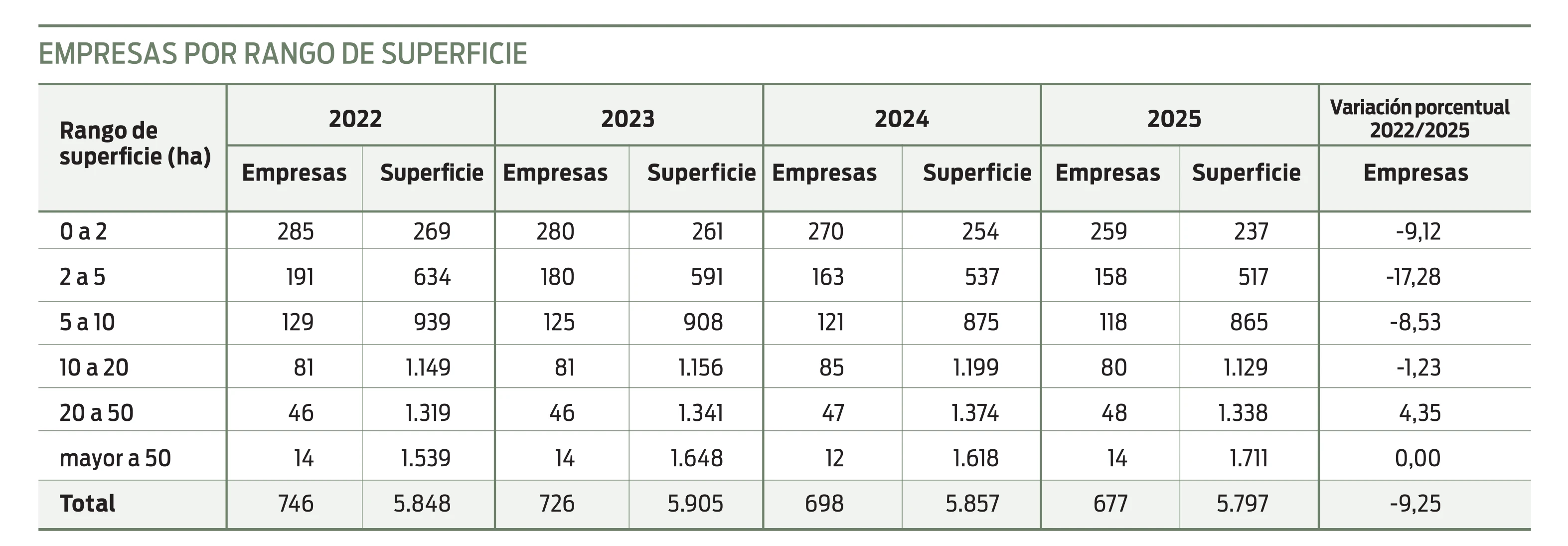 Empresas por rango de superficie