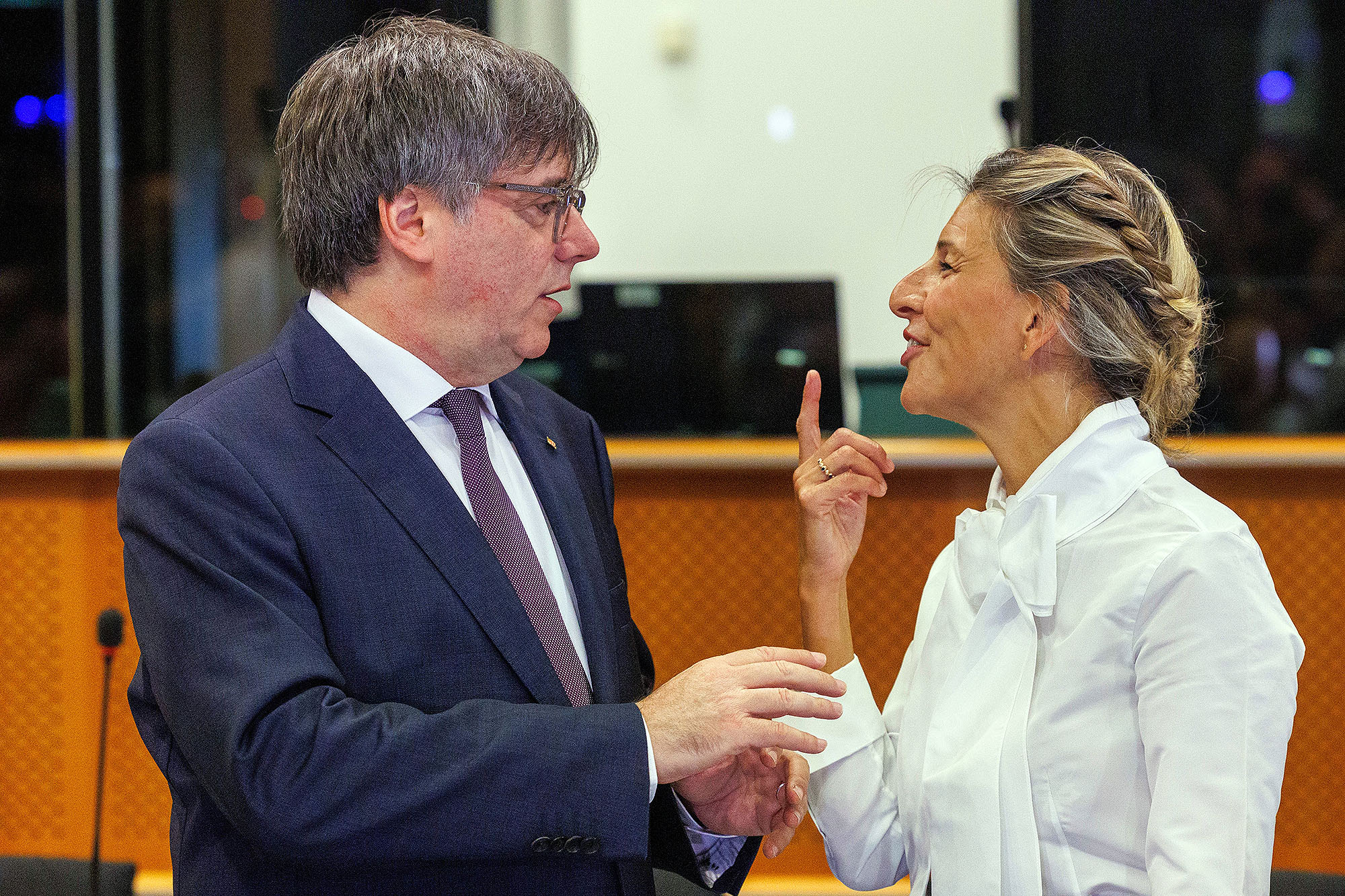 Carles Puigdemont, miembro del Parlamento Europeo, y Yolanda Díaz, vicepresidenta de España, en Bruselas (04.09.2023).
