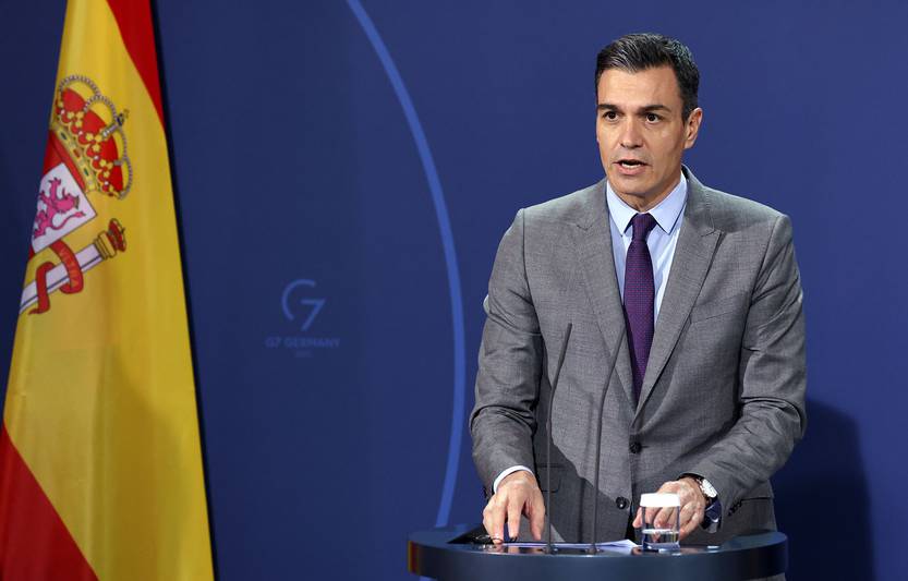 El presidente del Gobierno español Pedro Sánchez en una conferencia de prensa, el 18 de marzo, en Berlín, Alemania.