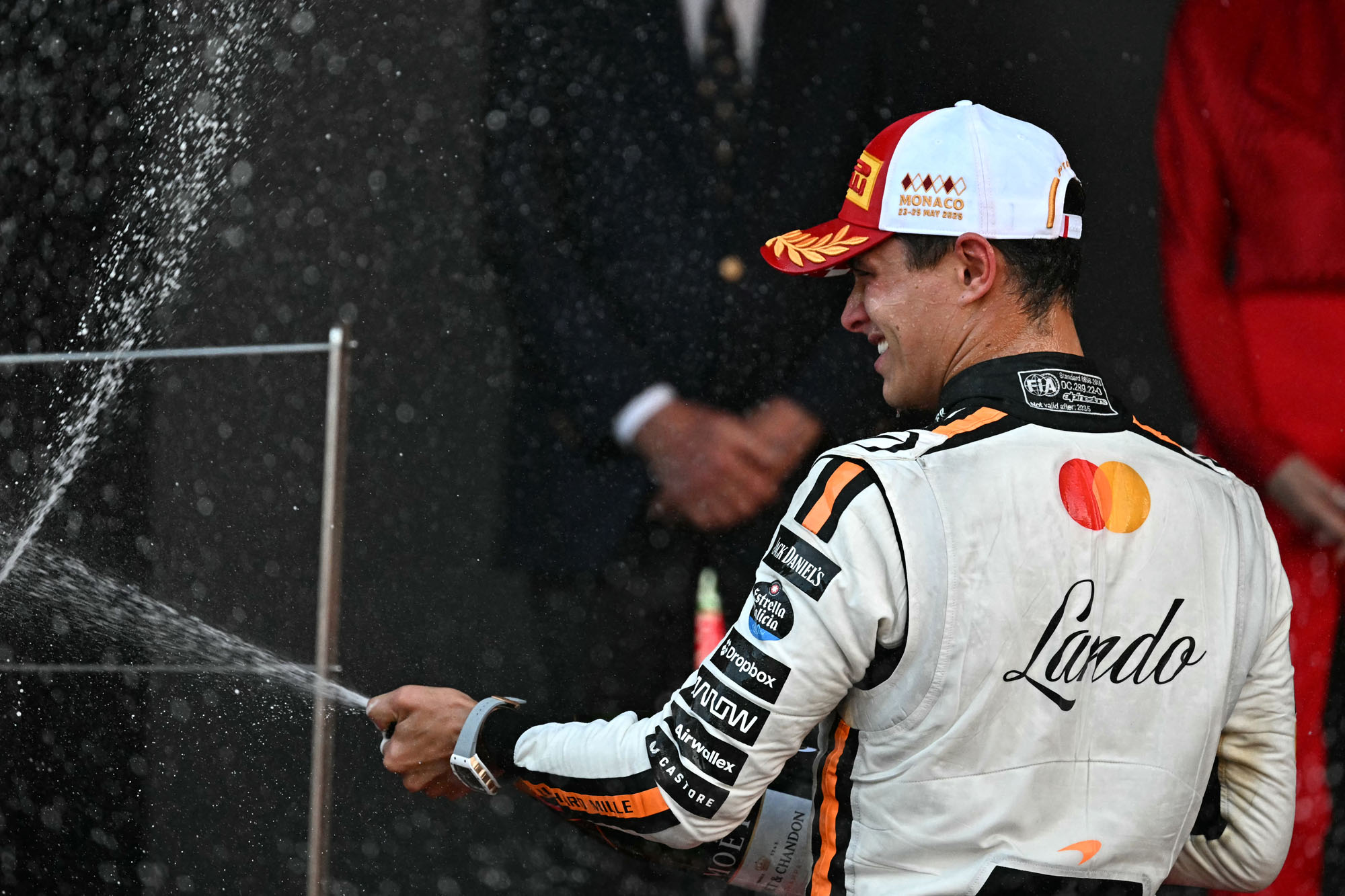 El piloto británico de McLaren, Lando Norris, en el podio tras ganar el Gran Premio de Mónaco de Fórmula 1.