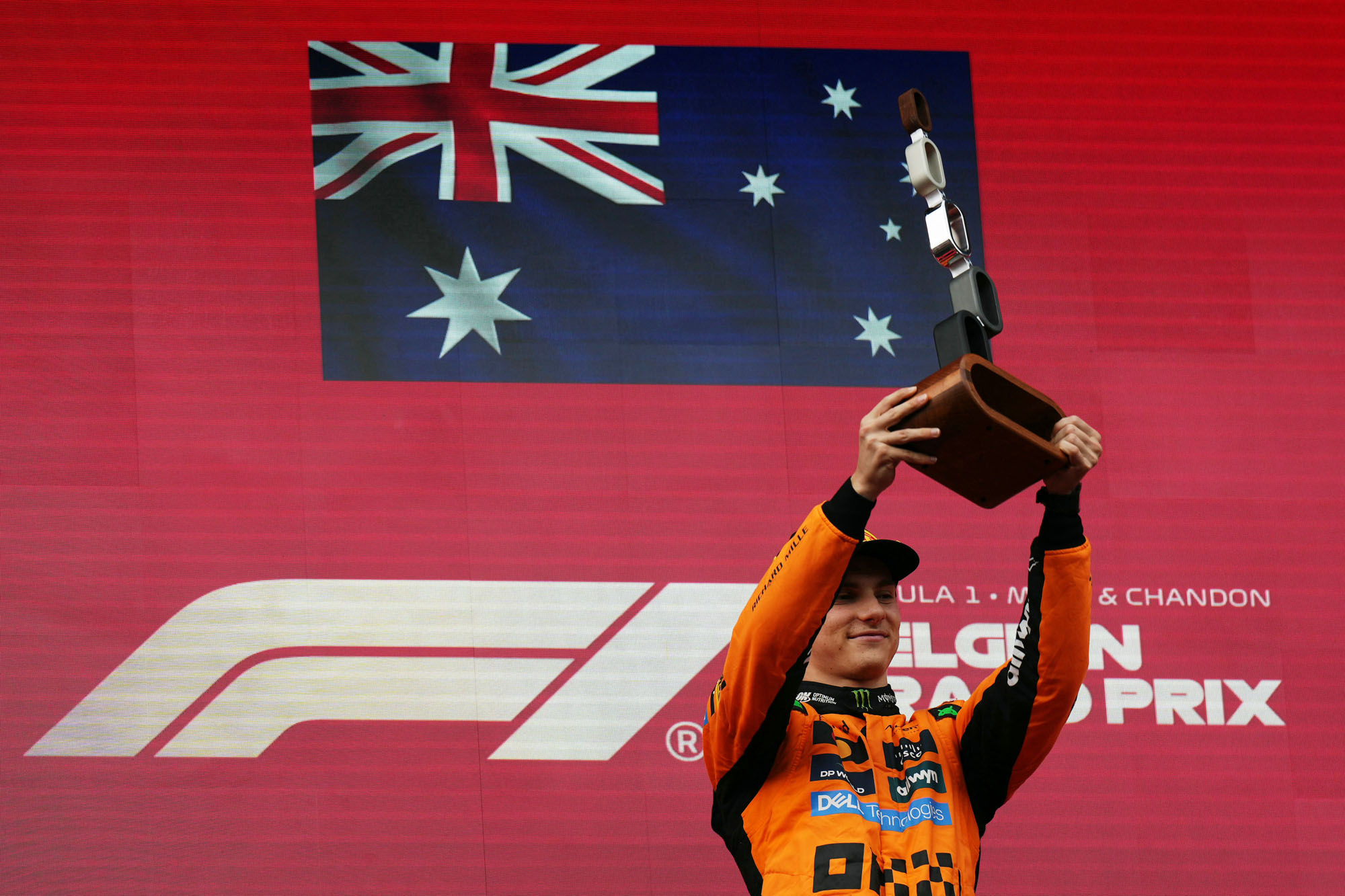 El australiano de McLaren, Oscar Piastri, tras ganar el Gran Premio de Bélgica de Fórmula 1 en el circuito de Spa-Francorchamps, en Spa, el 27 de julio.