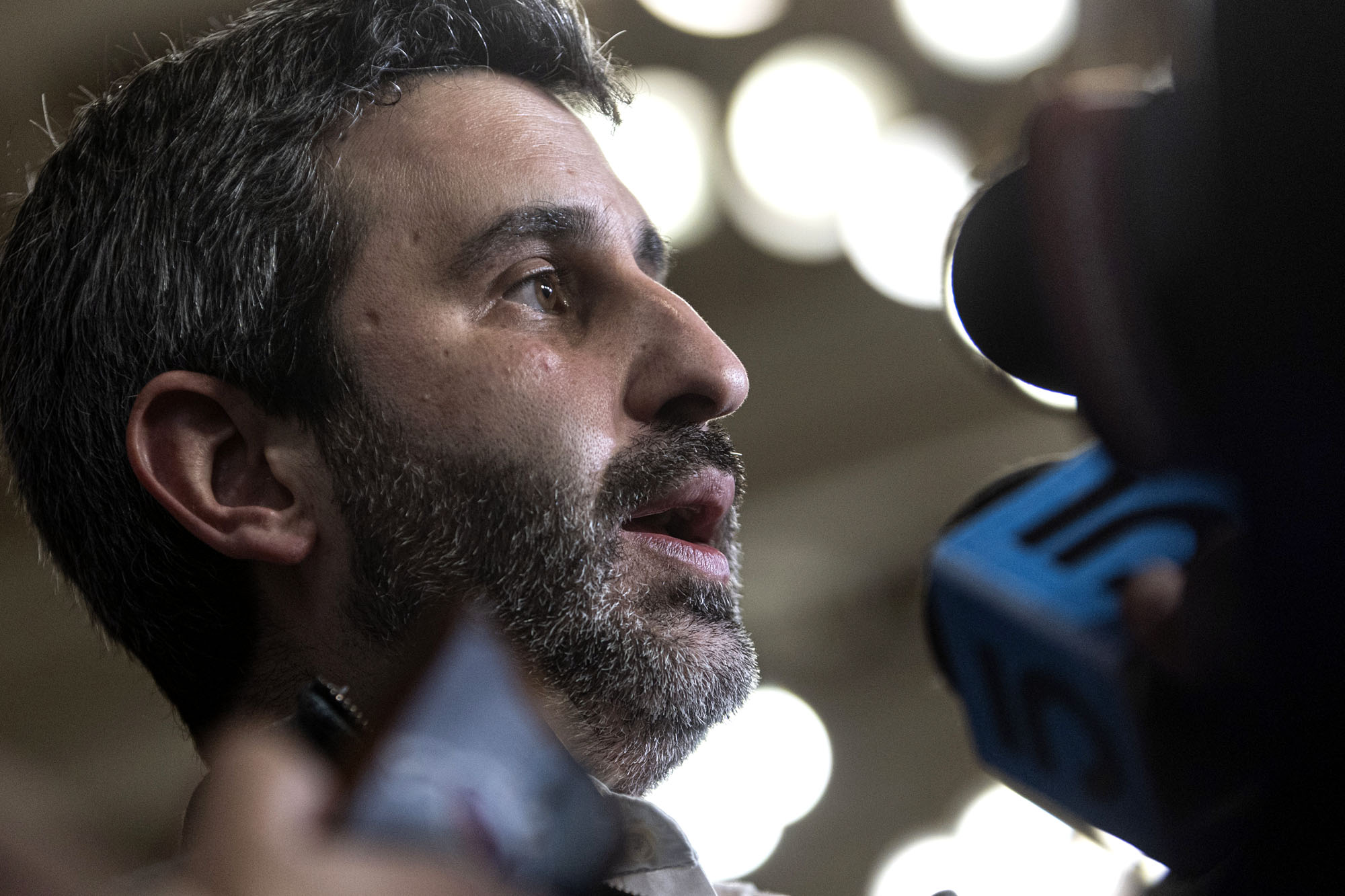 Daniel Caggiani en rueda de prensa por el tema pasaportes, el 30 de julio, en la Antesala del Senado.