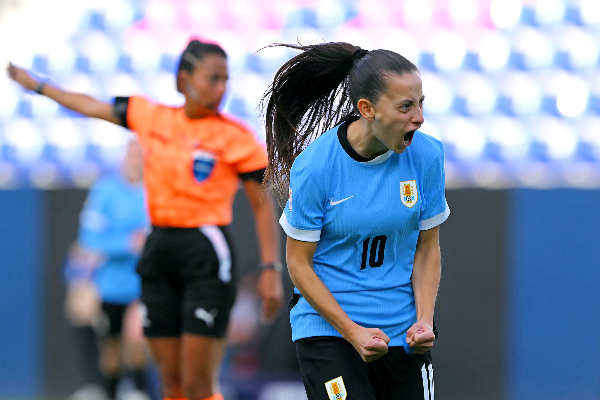 Belén Aquino tras el gol a Perú, el 18 de julio, en el estadio IDV de Quito.