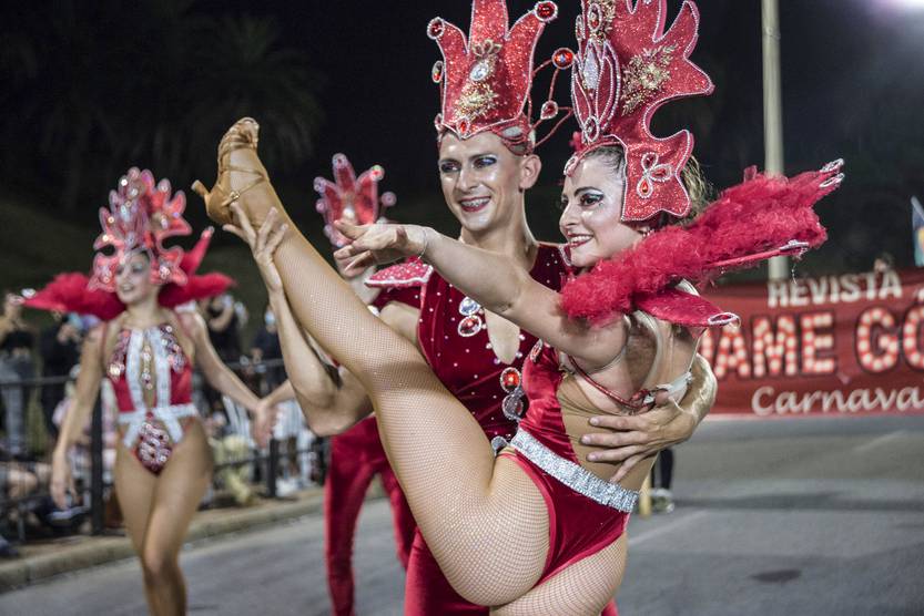 Madame gótica, durante el Desfile inaugural del Carnaval 2022, en el Paseo de las Canteras del Parque Rodó.