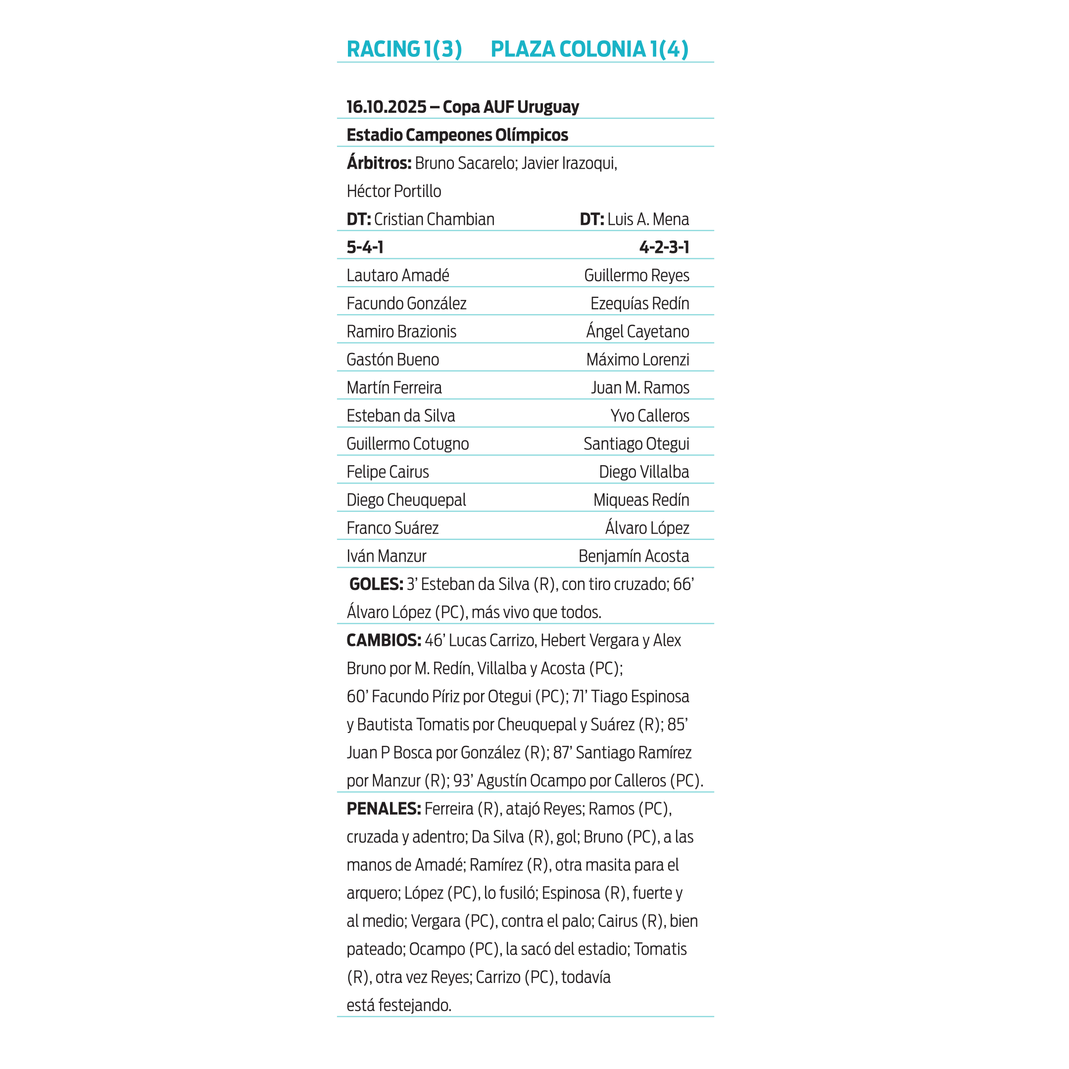 Ficha Racing - Plaza Colonia Copa Uruguay