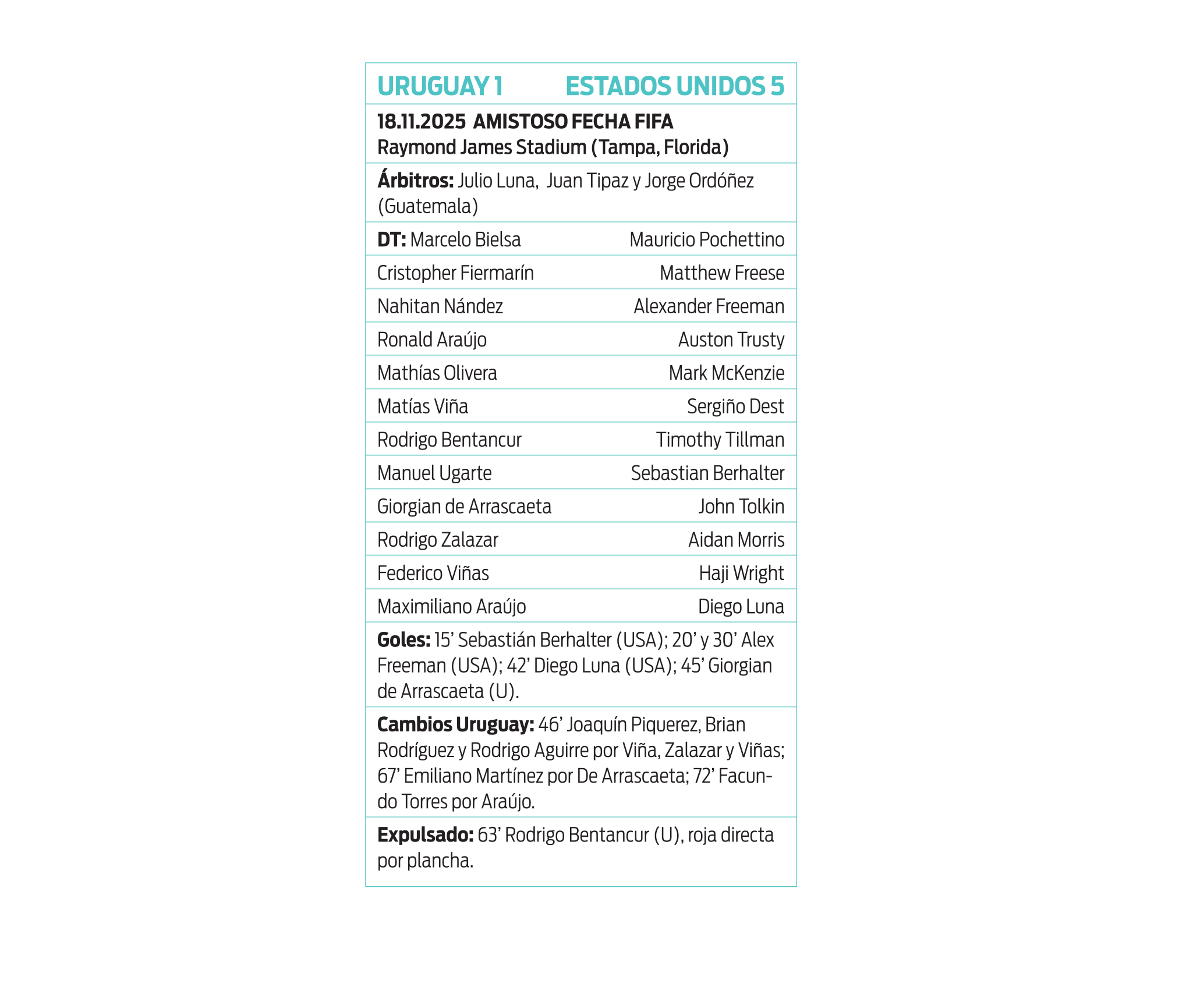 Ficha Uruguay - USA
