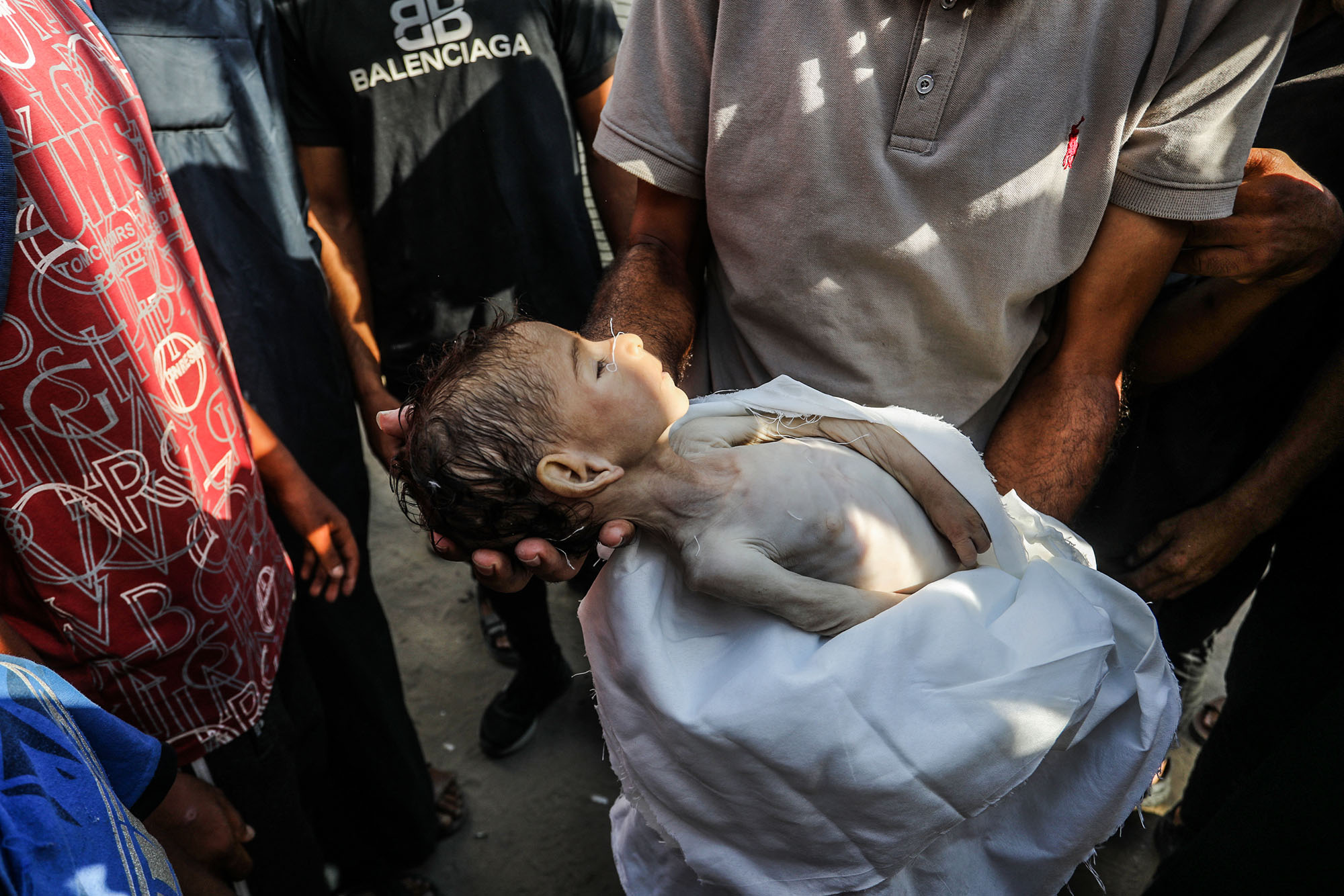 El cuerpo desnutrido de Yahya al-Najjar, de 4 meses, quien falleció por desnutrición severa, el 20 de julio, en Khan Yunis, Gaza.