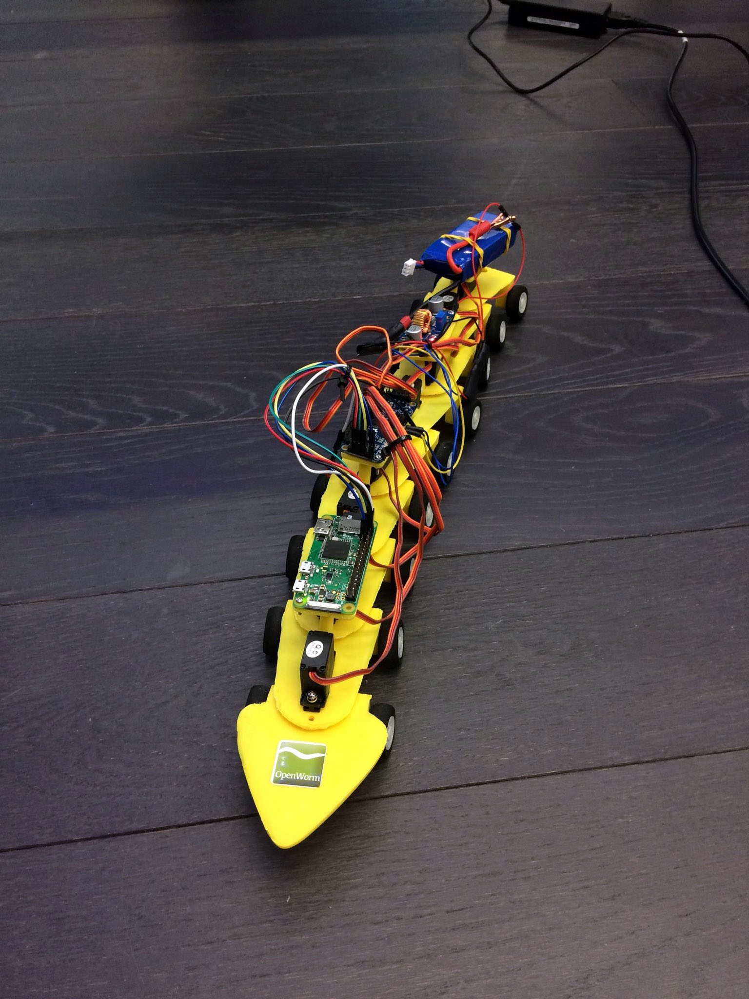El conectoma de un gusano fue cargado en este robot para gobernar sus movimientos - Foto de Twitter de OpenWorm