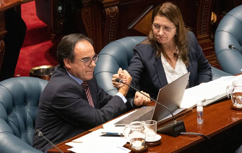 Robert Bouvier, ministro de Ambiente, y Karina Rando, ministra de Salud Pública, durante la interpelación, este miércoles, en el Senado.