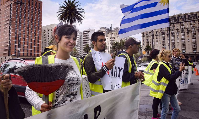 Trabajadores de Jornales Solidarios, este miércoles, en la Torre Ejecutiva.