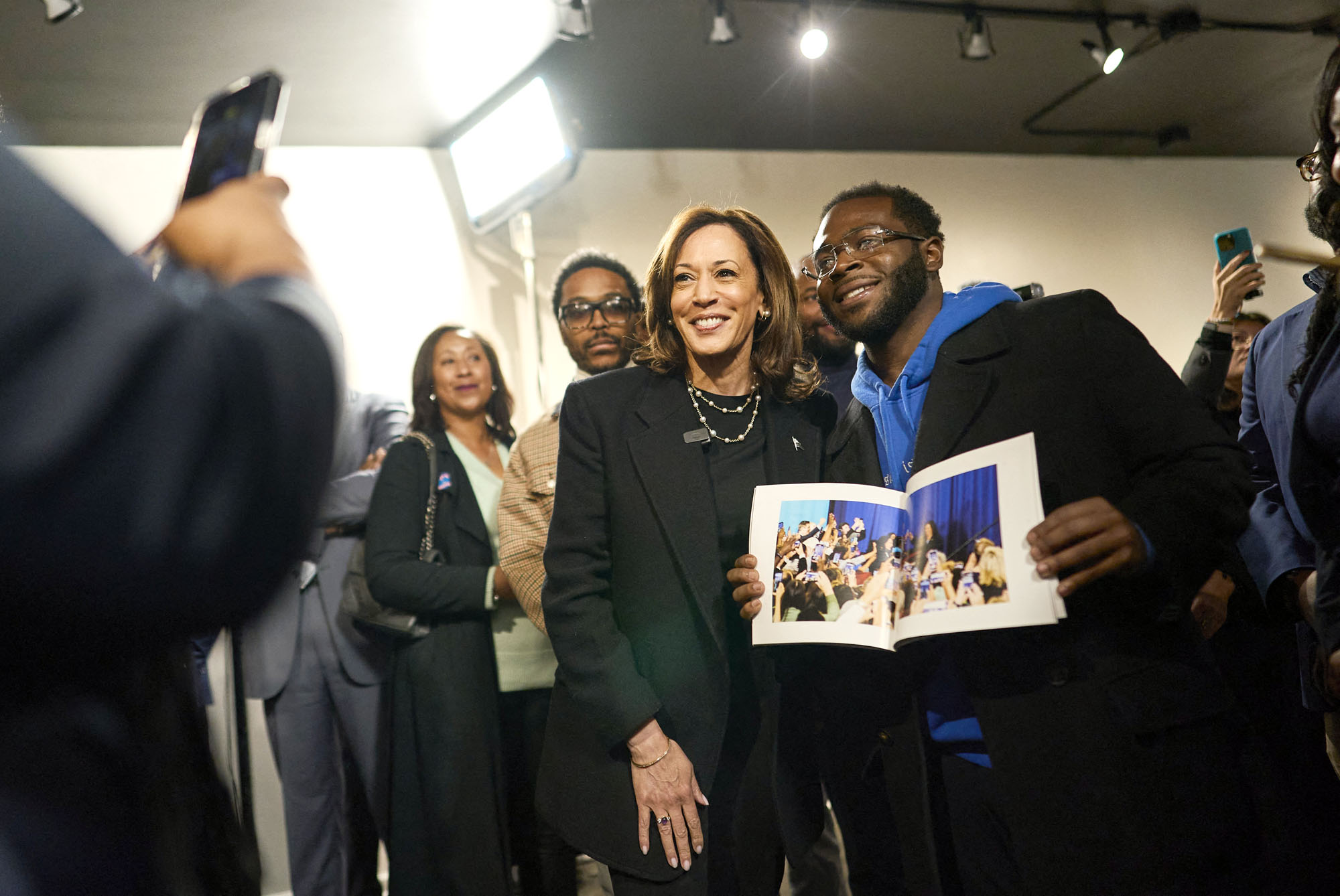 Kamala Harris en una pequeña empresa local propiedad de negros, en Detroit, Michigan, durante una parada de campaña.