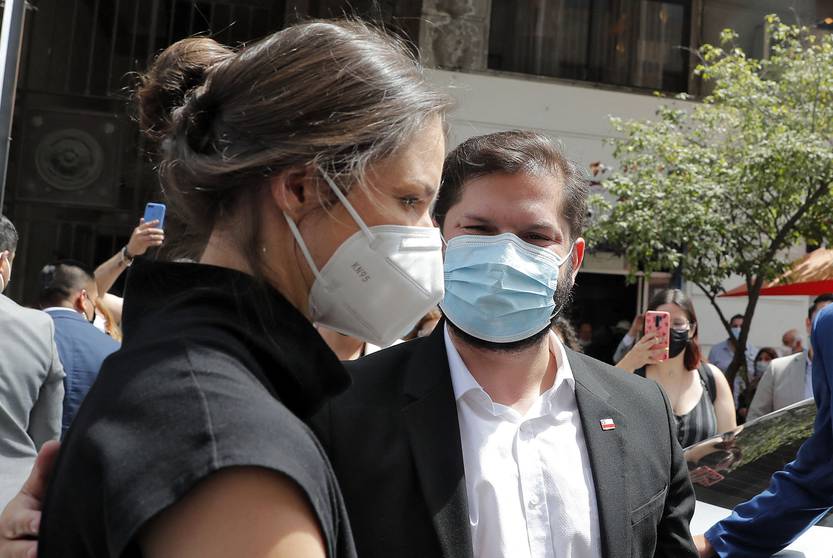 El presidente electo de Chile, Gabriel Boric y su pareja, Irina Karamanos, el 10 de enero en Santiago.
