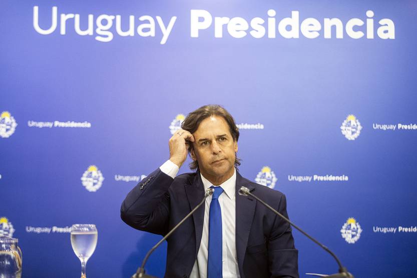 Luis Lacalle Pou en conferencia de prensa el 23 de marzo.
