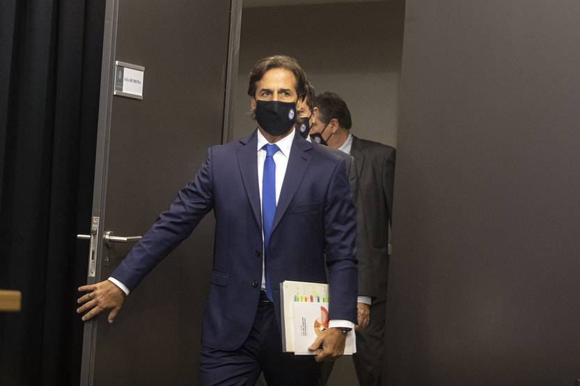 Luis Lacalle Pou en conferencia de prensa, este miércoles, en la Torre Ejecutiva.